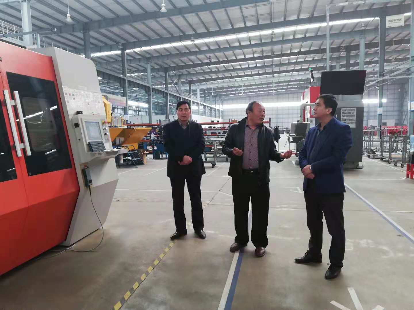 之后調(diào)研組一行又來(lái)到鈑金生產(chǎn)線,郭總詳細(xì)的講解了激光切割及數(shù)控折彎兩個(gè)機(jī)組的制造工藝,李軍副主席表示這些硬件設(shè)備顛覆了我們對(duì)傳統(tǒng)制造業(yè)的認(rèn)識(shí),亞澳智能制造的互聯(lián)網(wǎng)+制造理念很超前,對(duì)未來(lái)企業(yè)的智能制造發(fā)展提供了強(qiáng)大基礎(chǔ)。
