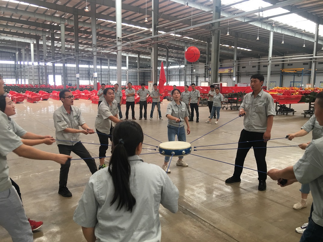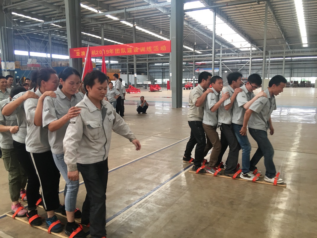 為了提高團隊協作能力,2019年6月6日亞澳農機全體員工在車間進行了團隊建設訓練活動。