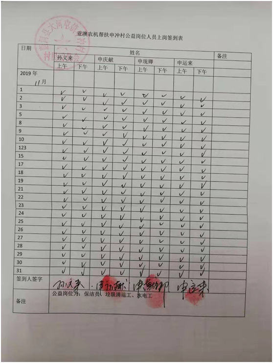 除此之外,我公司聯(lián)合村委會(huì)照顧一些特別貧困但有行動(dòng)能力的老人為村部垃圾清運(yùn)、水電維修、村落清潔等,并為此購(gòu)買公益崗位,每月定期給這些公益崗位發(fā)放工資500元/個(gè)月,以確保他們的正常生活。這一決定從2018年5月至今已經(jīng)實(shí)行了一年半時(shí)間,累計(jì)發(fā)放公益崗位工資3.1萬(wàn)元。