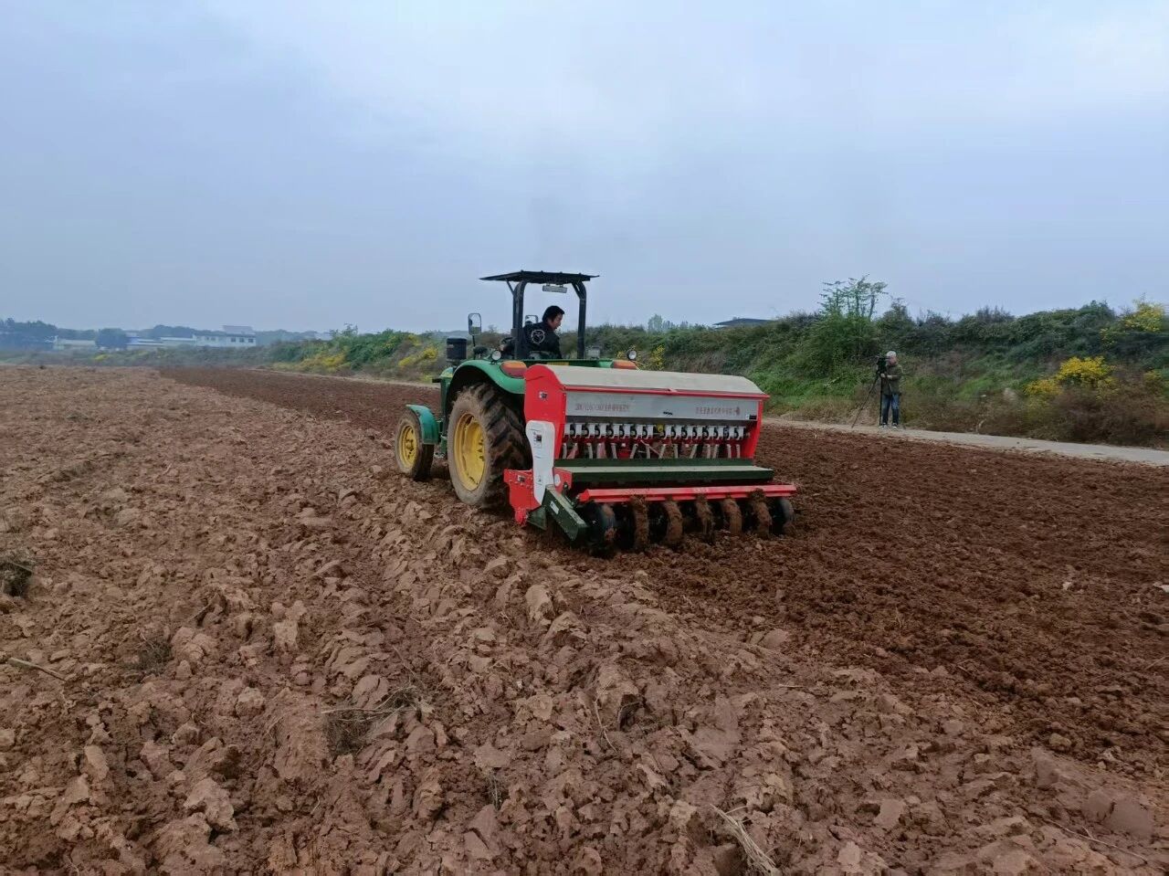 在百公里外的銅川市耀州區(qū)小丘鎮(zhèn)中原村,亞澳農(nóng)機同樣成為搶種主力。“播種期推遲了近十天,土壤又濕,最怕播深不均和倒伏。”農(nóng)機手操控著亞澳寬幅溝播機穿梭田間,機具搭載的指夾式排種器實現(xiàn)精準下種,配合可調(diào)節(jié)播深系統(tǒng),將播種深度嚴格控制在2—4cm的最佳范圍,既滿足銅川市農(nóng)機推廣站副站長姚關(guān)盈提出的“淺播搶積溫”要求,又通過均勻播種避免了“播量過大易倒伏”的風(fēng)險。截至目前,銅川市已調(diào)度1600余臺套農(nóng)機投入秋播,亞澳機具憑借“旋耕、播種、施肥一體化”優(yōu)勢,大幅提升了濕墑地塊的作業(yè)效率,助力農(nóng)戶把延誤的農(nóng)時搶回來。