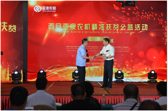 開機儀式上,中國農機化協會還就“甘肅省蘭州市永登縣”精準扶貧工作給予亞澳高度的認可。永登縣團莊村屬干旱貧困山區,全村現有7個村民小組,421戶、1696人。近年來,幫扶單位先后捐贈了30多臺(套)特色農機具,但仍缺少大中型農機具,農機化服務能力不足,不能滿足農業生產需求。此次中國農業機械化協會聯合亞澳公司等有關單位向團莊村捐贈價值40多萬元農業機械,必將對團莊和周邊鄉村農業和農村經濟發展、全面建設小康社會起到很大地推進作用。