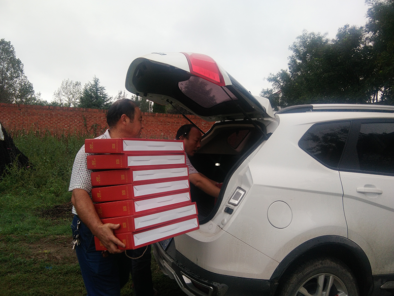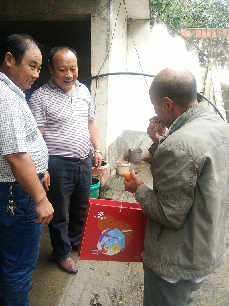 淫雨霏霏,在國慶、中秋雙節來臨之前,2017年9月25日下午,亞澳南陽農機有限公司總經理助理郭靖懷著滿滿的熱情與關懷,帶著月餅禮盒,再次來到大河屯鎮申沖村開展扶貧慰問工作。